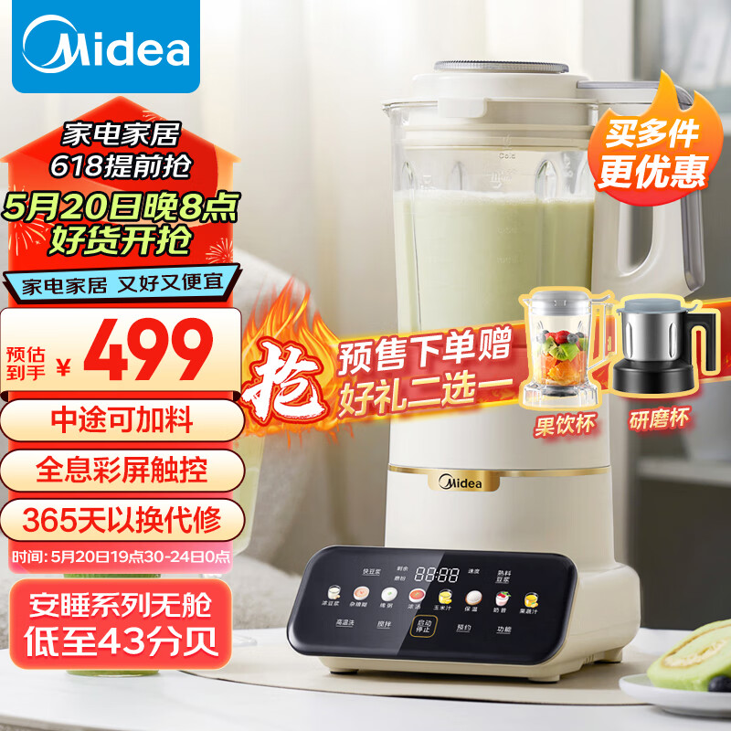 美的(Midea)安睡Max低音破壁机家用1.75L榨汁机柔音降噪豆浆料理机MJ-PB1S1价格:499.00元!
