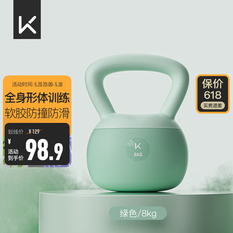 Keep软胶壶铃男女士家用健身哑铃练手臂深蹲提臀形体训练 绿色/8KG价格:98.90元!