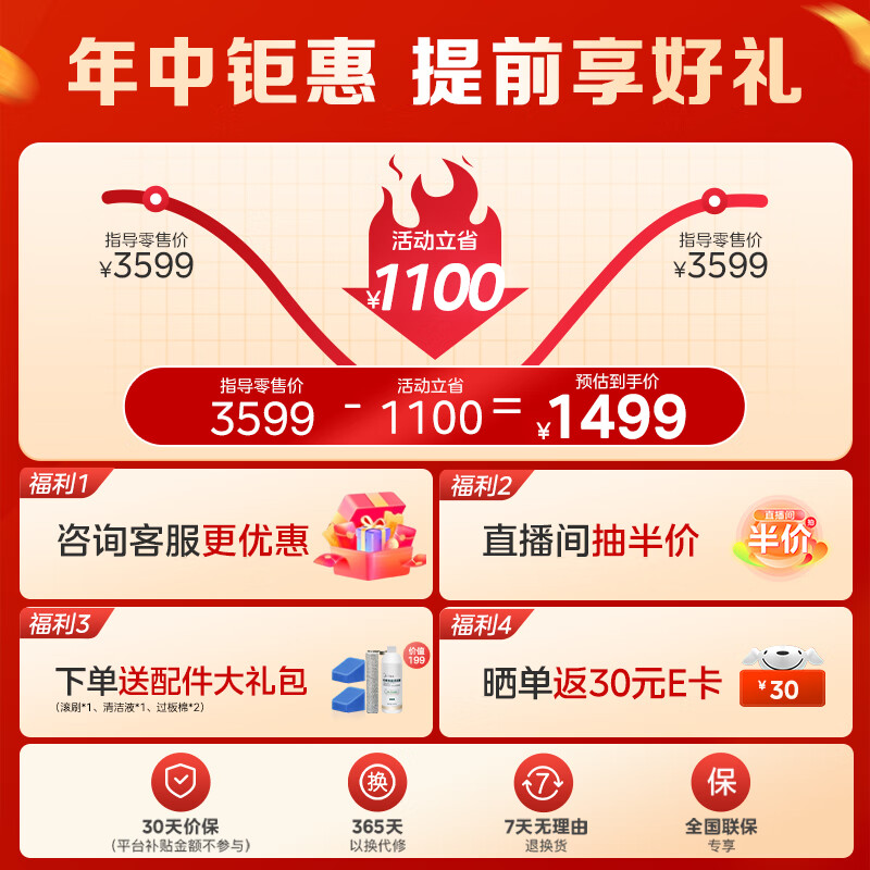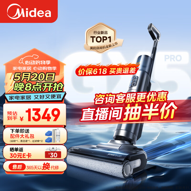 美的(Midea)洗地机GX5pro 无线家用吸尘洗拖一体机 自清洁三贴边无尘感洗地机 实时电解水除菌升级防缠绕价格:1499.00元!