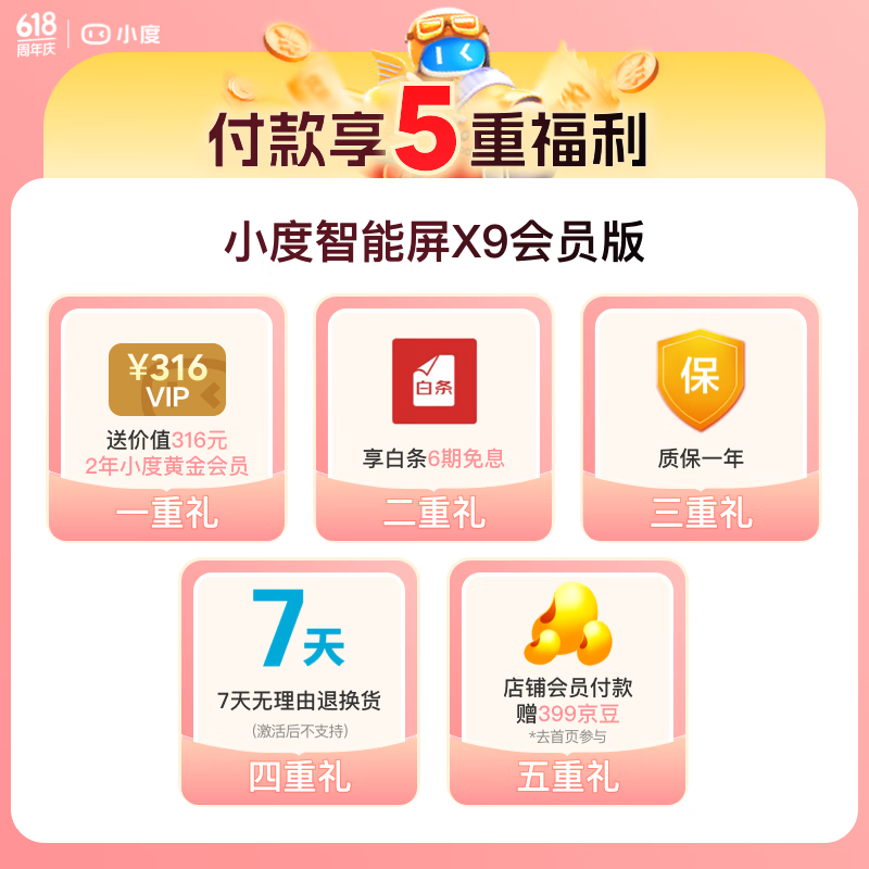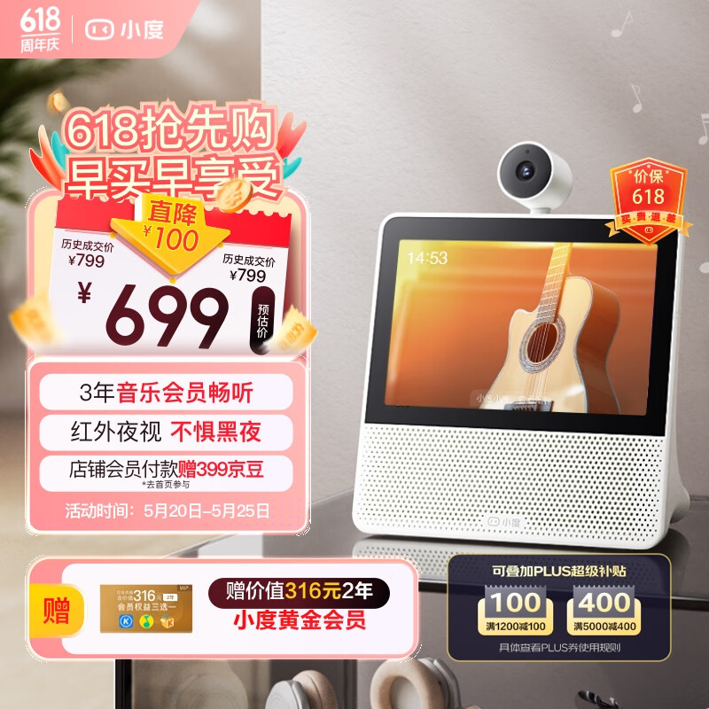 小度智能屏X9 会员版 云台360度摄像 红外夜视 视频通话 蓝牙音箱触屏音响 家庭影院 小孩陪伴老人看护价格:699.00元!