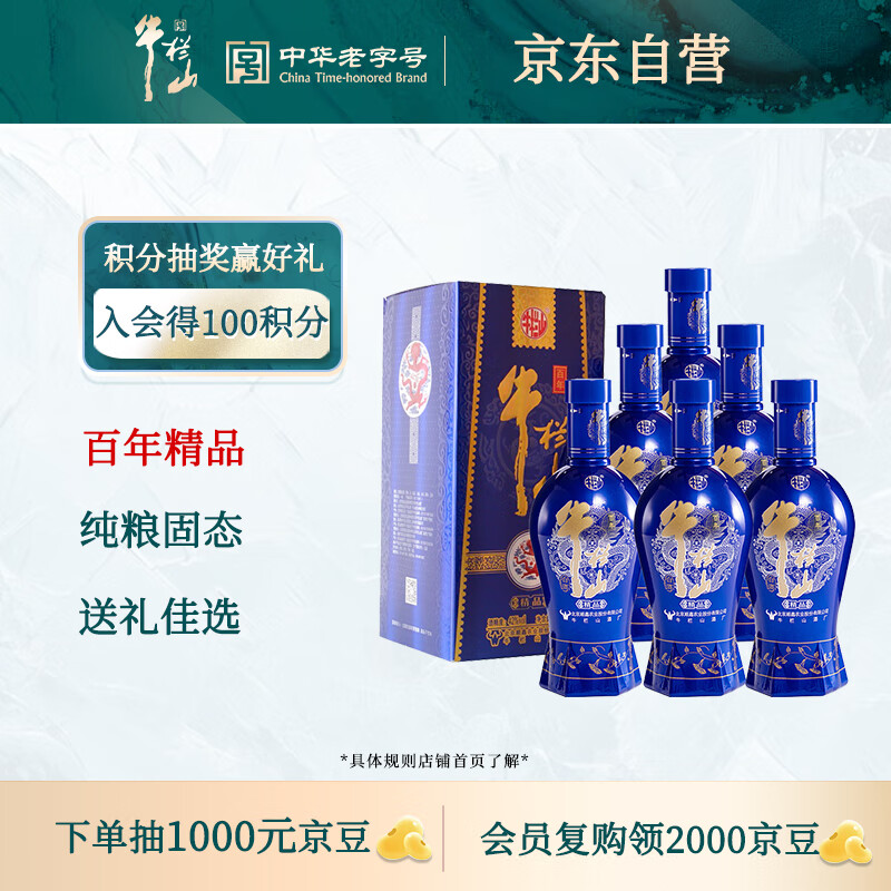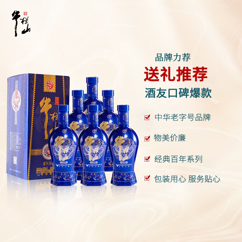 牛栏山 百年精品 蓝瓷 浓香型 白酒 42度 500ml*6瓶 整箱装价格:279.00元!