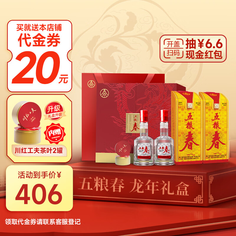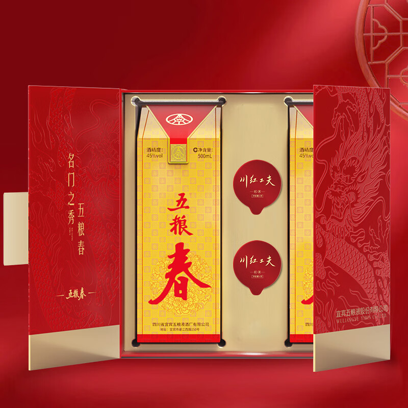 五粮液 五粮春 龙腾盛世 浓香型白酒 45度 500ml*2瓶 礼盒装 端午节送礼价格:406.00元!