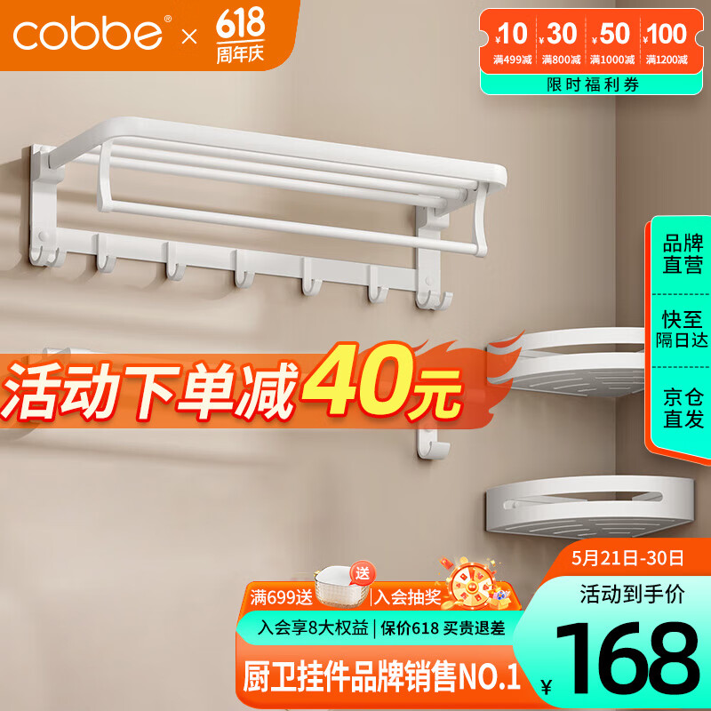卡贝(cobbe)太空铝毛巾架浴室壁挂免打孔卫生间置物架洗手间浴巾架五金挂件价格:208.00元!