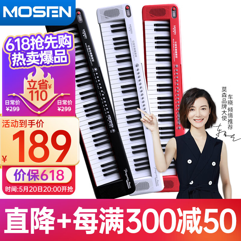 莫森(MOSEN)BD-668G电子琴 61键便携式儿童教学多功能入门琴 时尚款聪慧白价格:189.00元!
