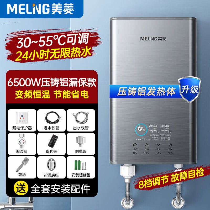 美菱MELNG 即热式电热水器小厨宝变频恒温快热家用热水器6500W即开即热免储水热水器MJR-DC6565价格:359.00元!