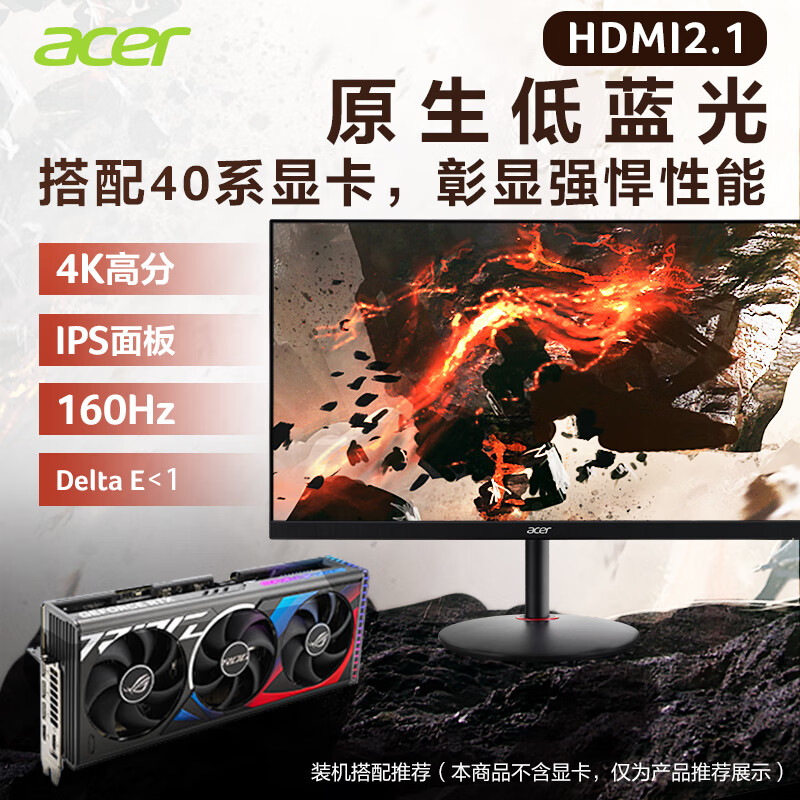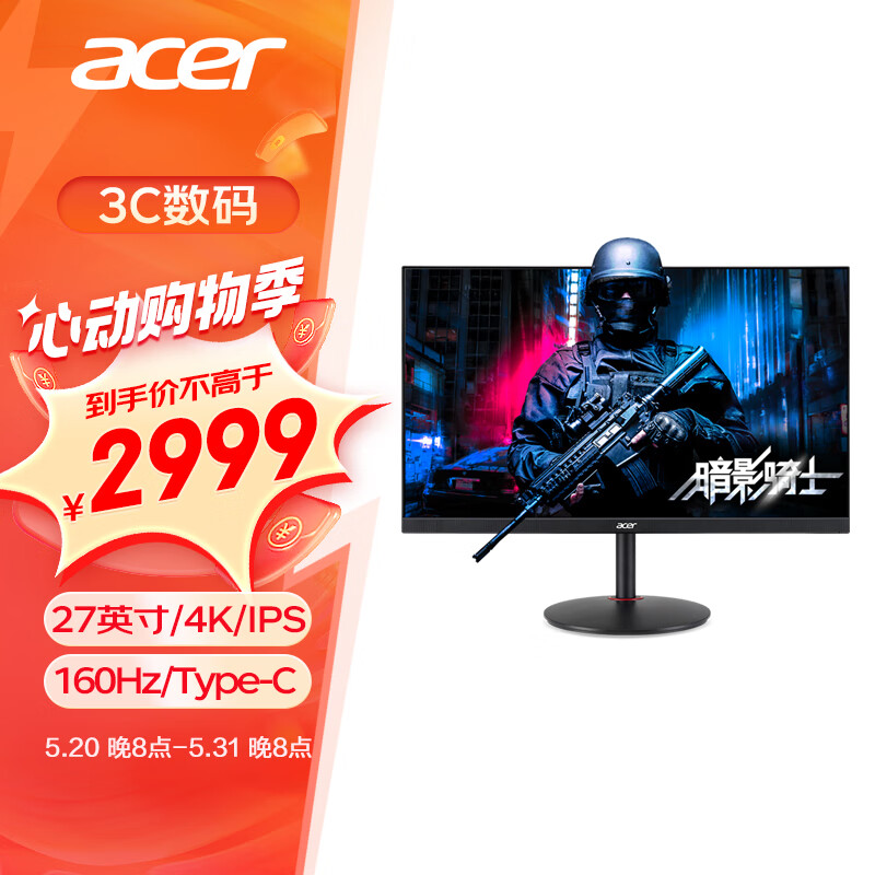 宏碁(Acer)暗影骑士27英寸4K友达低蓝光IPS屏160Hz+TypeC接口+HDR600电竞显示器(XV272K)价格:3999.00元!