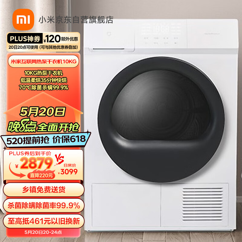 米家小米出品互联网热泵烘干机 10公斤全自动家用干衣机洗衣机伴侣 35分钟快烘小爱语音 H100MJ101W价格:2999.00元!