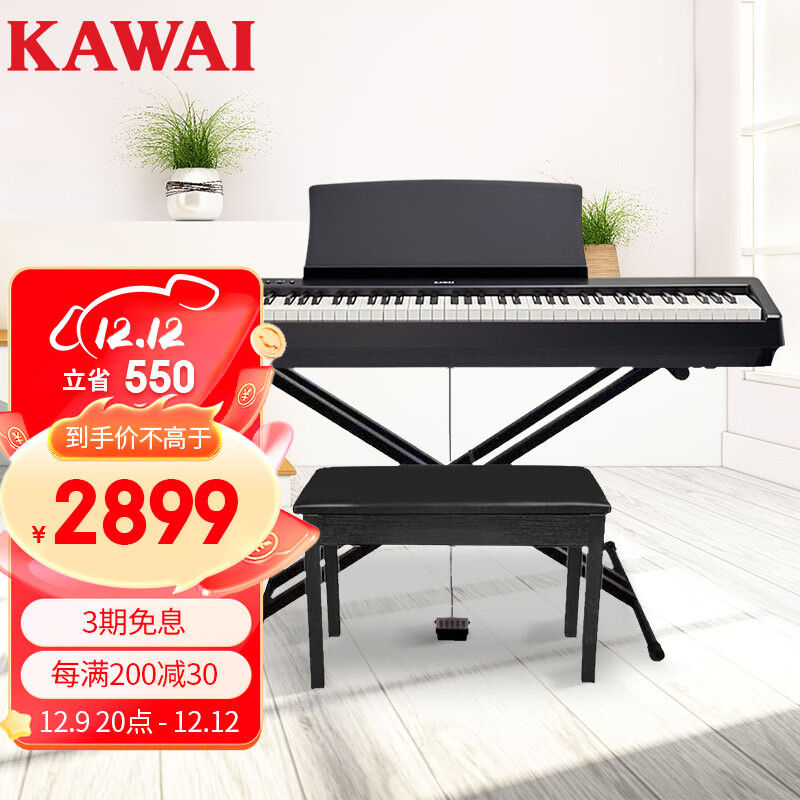 卡瓦依(KAWAI)电钢琴ES110黑色主机88键重锤便携式电子钢琴初学者家用卡哇伊价格:3409.00元!