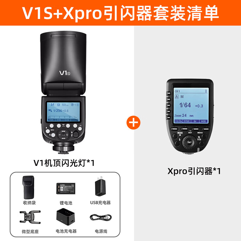 神牛V1机顶闪光灯单反相机外拍摄影补光灯户外人像高速同步TTL热靴闪光灯【V1+Xpro引闪器】 索尼版价格:1768.00元!