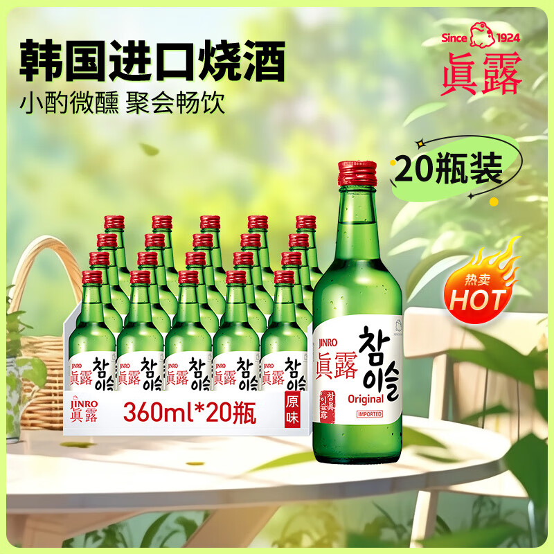 真露韩国进口烧酒20.1°竹炭酒 360ml*20瓶 整箱装价格:199.00元!