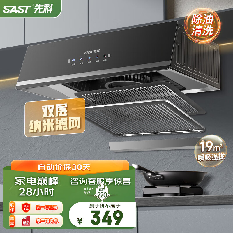 先科(SAST)油烟机中式抽油烟机家用吸油烟机老式小尺寸厨房顶吸式一体脱排抽烟机公寓出租房小户型用 触摸体感智控+自动清洗-不包安装价格:699.00元!