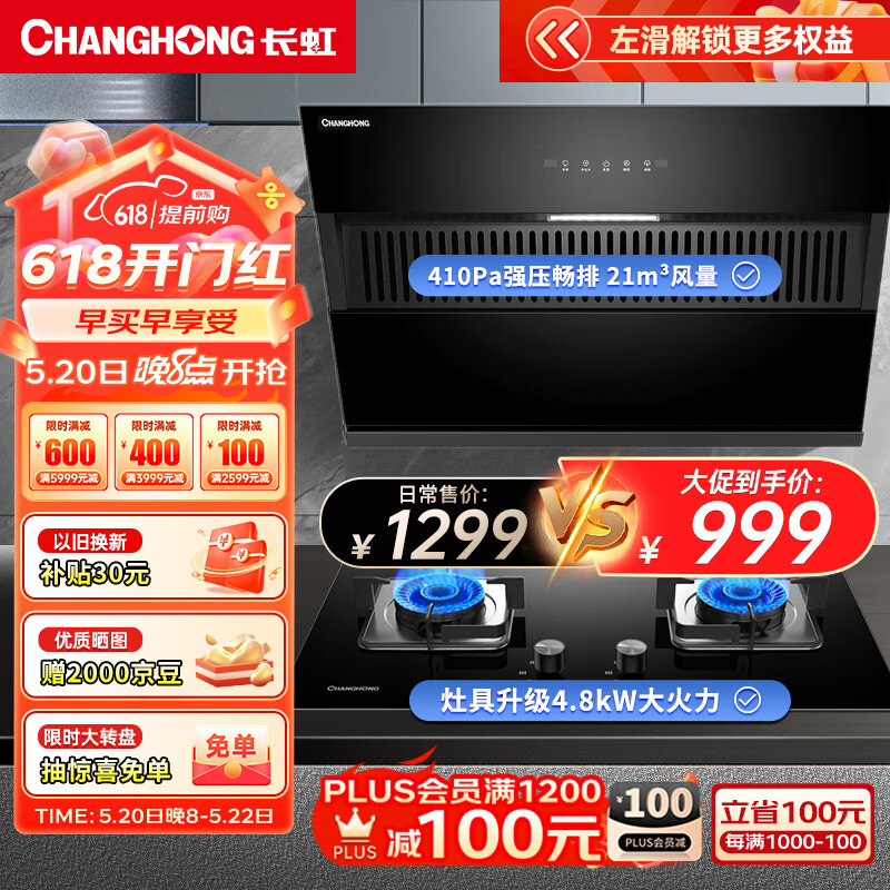 长虹(CHANGHONG)油烟机 侧吸烟灶套装家用 21爆炒大吸力 体感控制 玻璃自清洗 4.8kw灶具 J311S+C03S天然气套装价格:1199.00元!