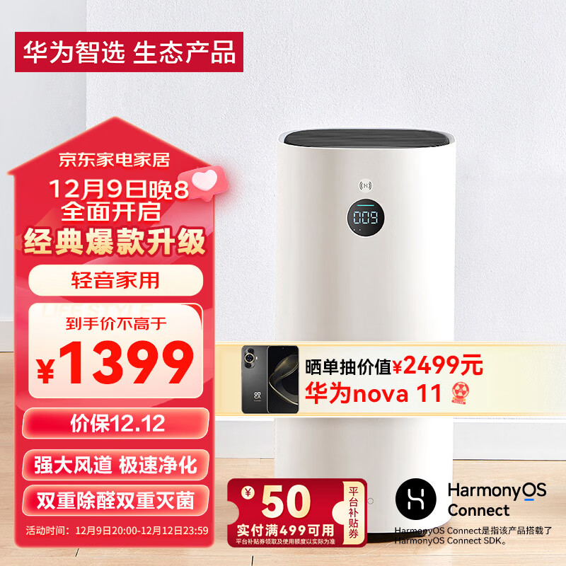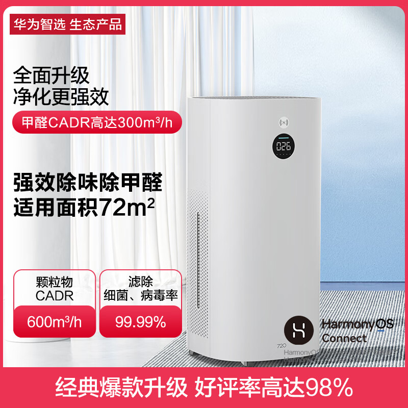 华为智选720空气净化器2 专业除甲醛大风量过滤多种异味 负离子紫外线杀菌除二手烟 轻音家用价格:1449.00元!