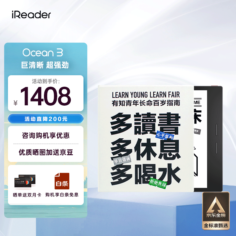 掌阅iReader ocean3 7英寸电子书阅读器 墨水屏电纸书电子纸 32GB 有知青年磁吸套·套装价格:1408.00元!
