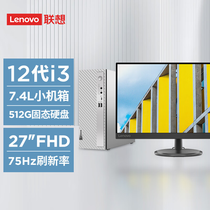 联想(Lenovo)天逸510S 个人商务台式机电脑主机(酷睿12代i3-12100? 8G 512G SSD wifi win11 )27英寸显示器价格:3199.00元!
