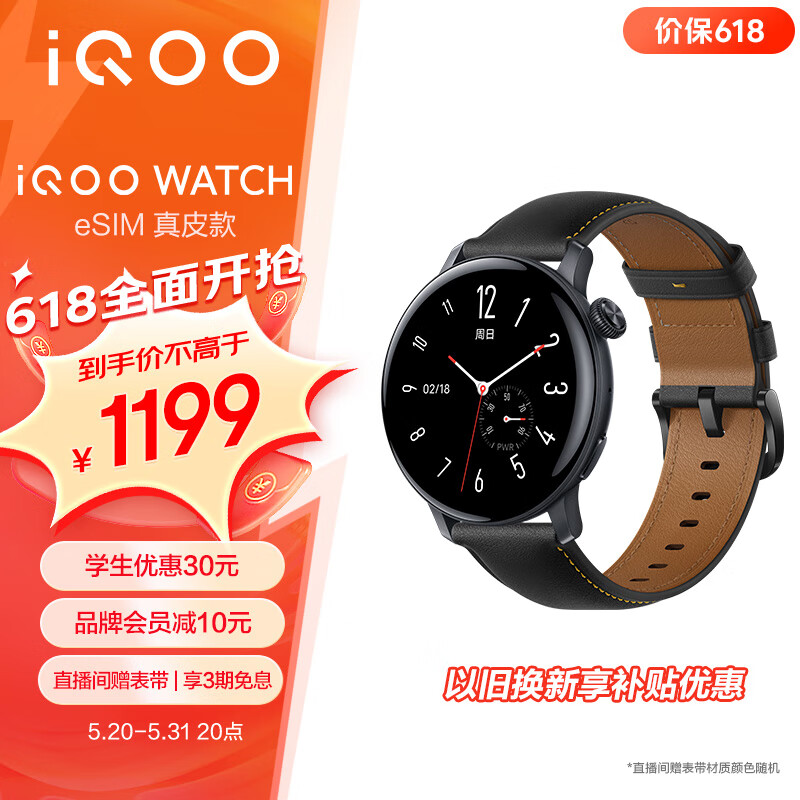 vivo iQOO WATCH eSIM真皮版 星轨黑 AIGC智能手表表盘 血氧心率监测 自研蓝河系统 超长续航iqoowatch价格:1199.00元!