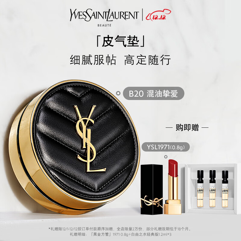 YSL圣罗兰皮气垫B20 14g持妆遮瑕防晒粉底液 礼盒生日礼物女圣诞价格:680.00元!