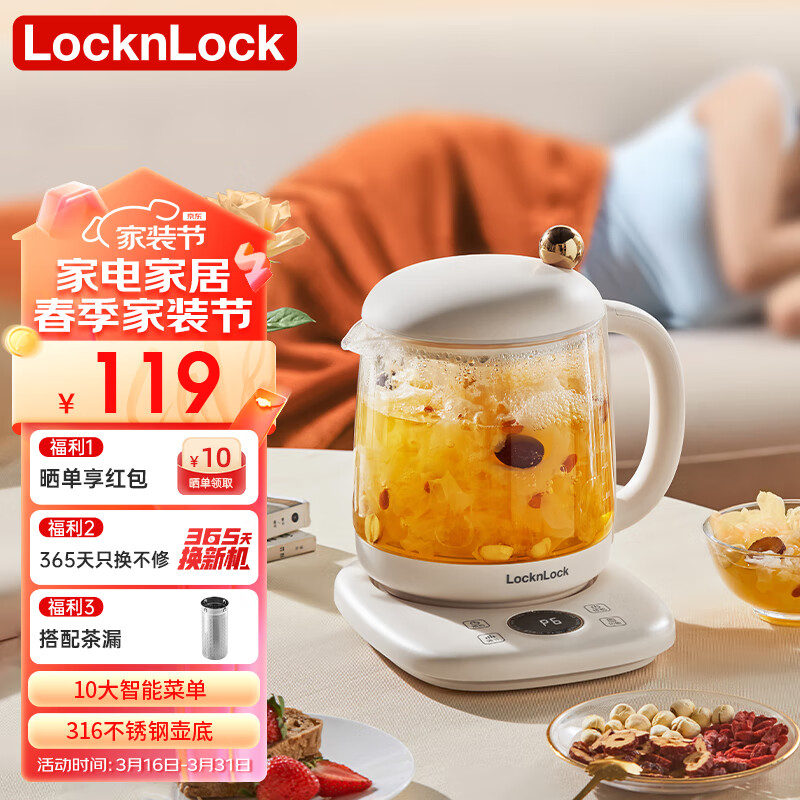 乐扣乐扣养生壶 煮茶壶办公室煮茶器家用玻璃花茶壶烧水壶电热水壶电炖壶价格:119.00元!