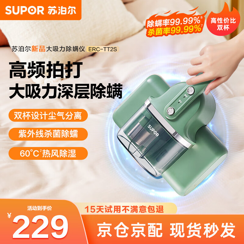 苏泊尔(SUPOR)除螨仪家用手持除螨机吸尘大吸力 UV紫外线杀菌除螨虫 60°C热风除湿床上拍打除螨 ERC-TT2S(竹青绿)价格:329.00元!