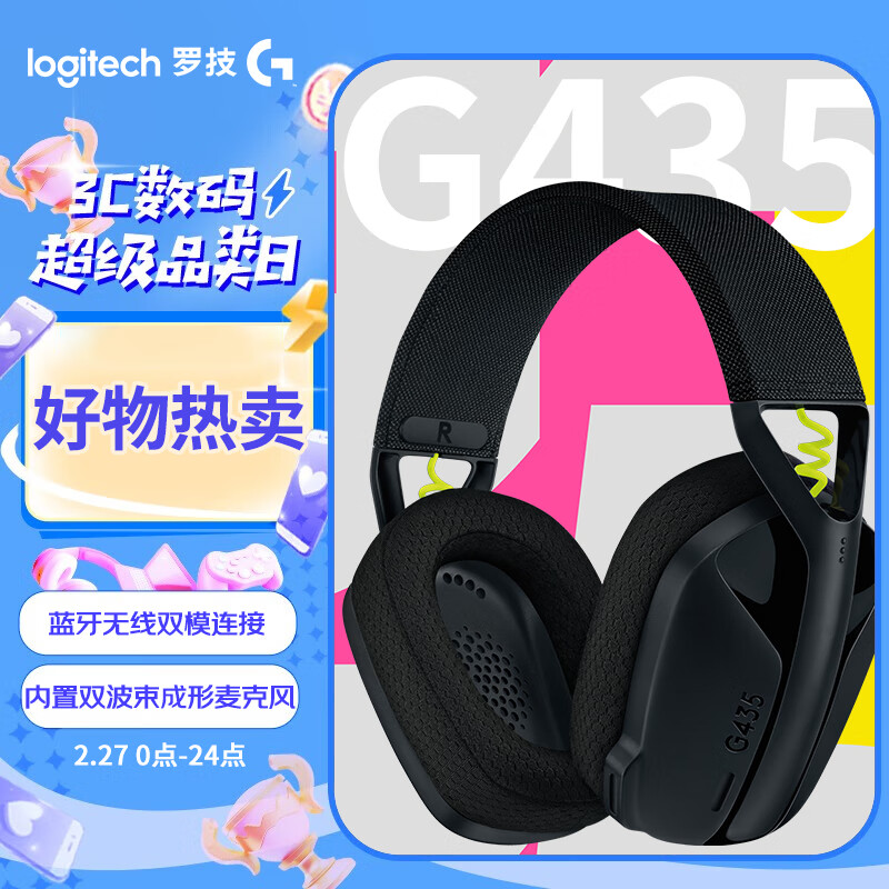 罗技(G)G435 无线头戴式游戏耳机 蓝牙耳机 虚拟环绕声电竞耳机 LOL吃鸡FPS听声辩位 送男友 黑色价格:599.00元!