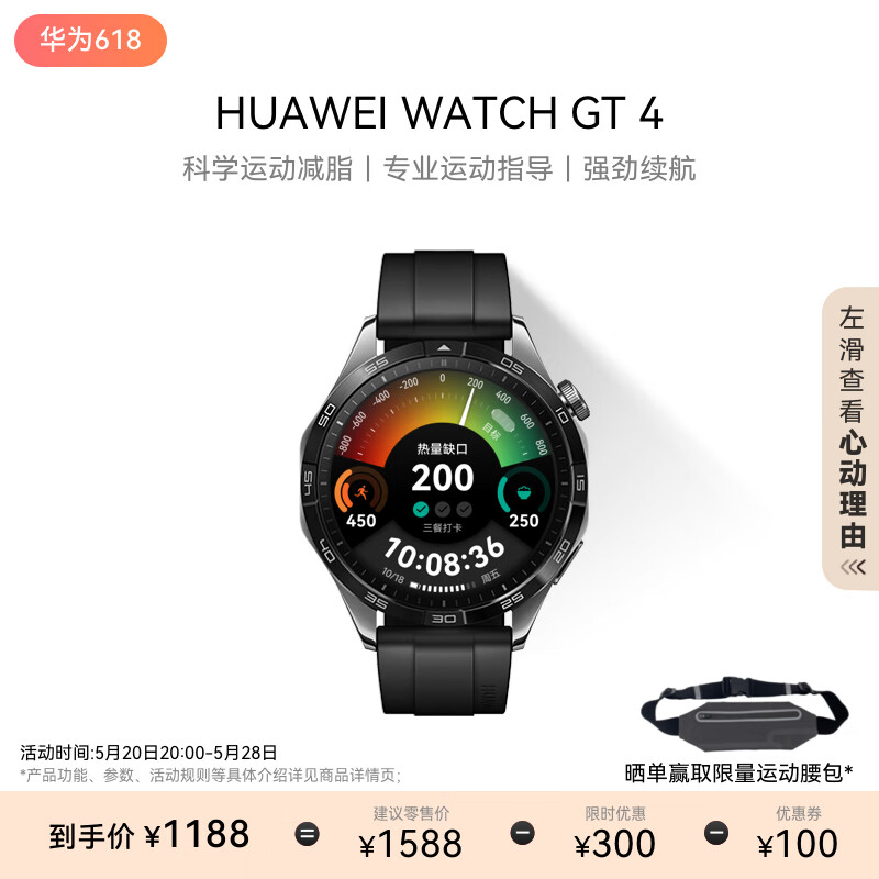 华为WATCH GT4智能手表呼吸健康研究心律失常提示华为智能手表华为gt4曜石黑支持龙年表盘价格:1288.00元!