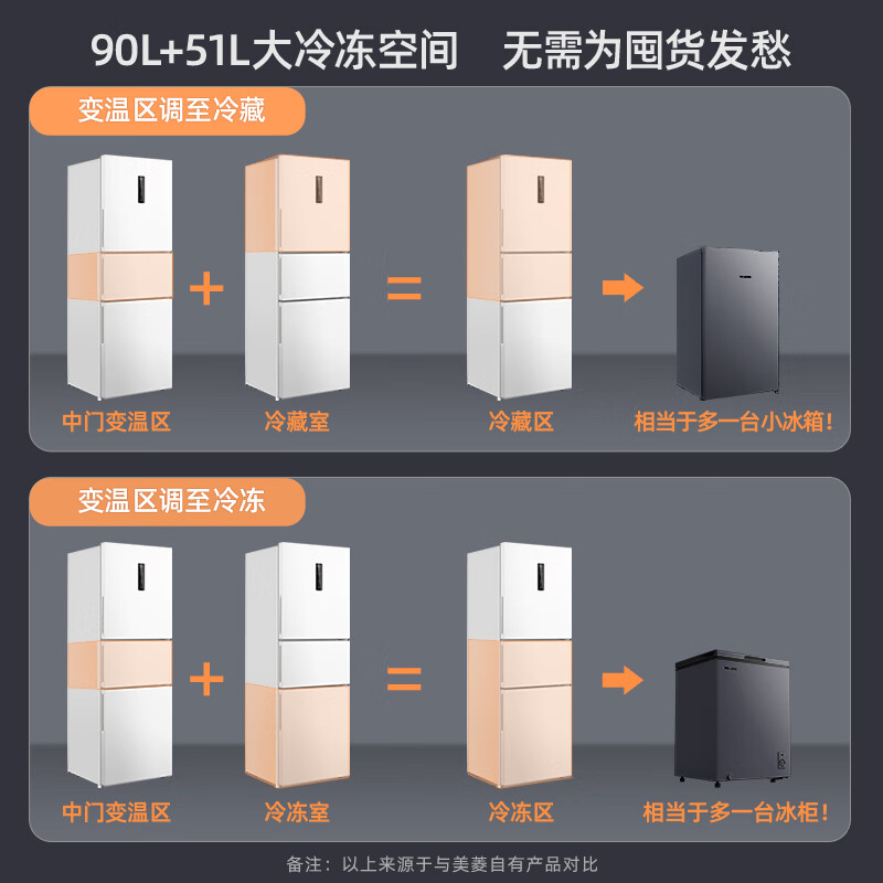 5、储藏空间很大,家里一个老人两个孩子,完全够用,送货很快,送货****也很周到,还温馨提醒两三天后在插电,村里的在实体店买的,贵很多