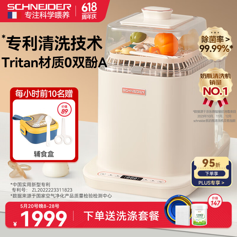 SCHNEIDER施耐德全自动奶瓶清洗机 奶瓶消毒器带烘干 婴儿蒸汽消毒洗奶瓶机价格:2999.00元!