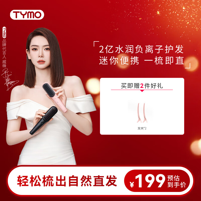 TYMO【戚薇同款】Mini 迷你直发梳负离子护发不伤发两用美发造型梳子护发蓬松拉直 粉色价格:199.00元!