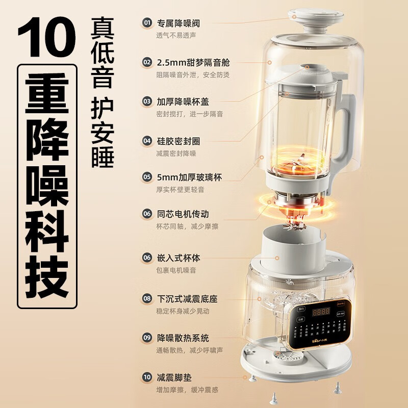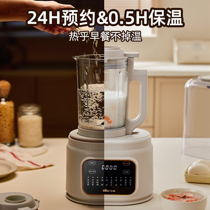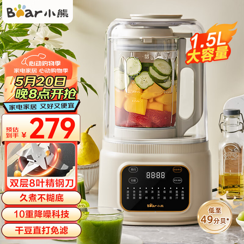 小熊(Bear)破壁机轻音家用1.5L大容量降噪豆浆机加热全自动榨汁机隔音罩搅拌辅食机 PBJ-E08M7价格:329.00元!