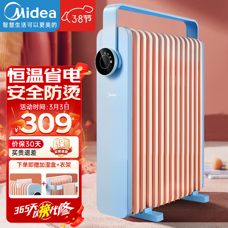美的(Midea) 电油汀电暖气电暖器取暖器家用电油丁家用电暖气片烤火炉电热器节能干衣加湿 【13片2200W】恒温省电 烘衣加湿价格:449.00元!
