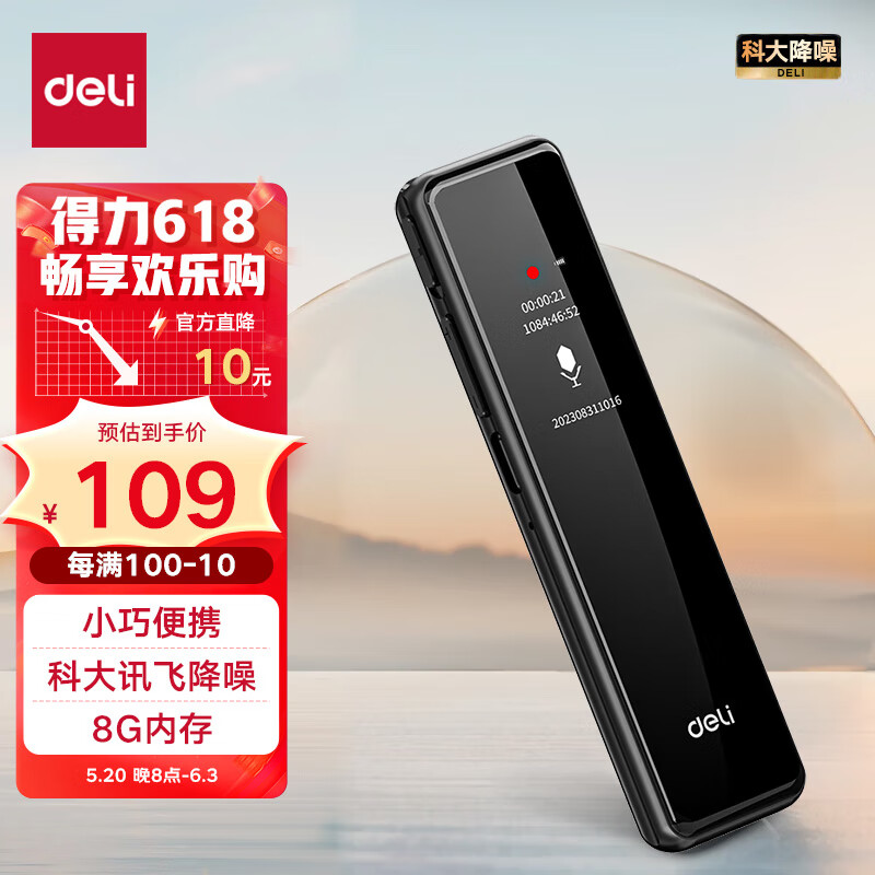 得力录音笔 录音神器 便携式随身 录音设备专业录音 超长待机 录音笔学习会议培训 8G MP301价格:119.00元!