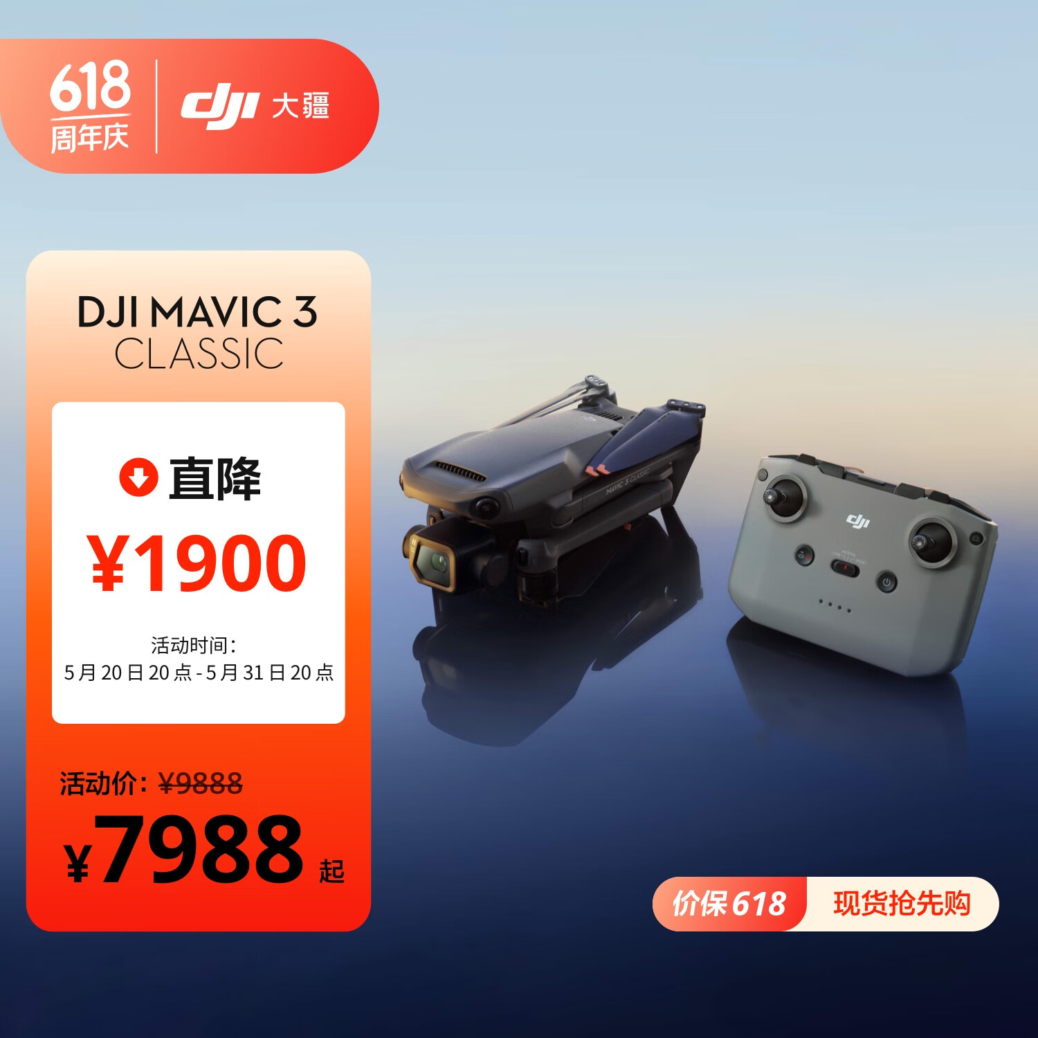 大疆 DJI Mavic 3 Classic (DJI RC-N1) 御3经典版航拍无人机 哈苏相机 高清影像 智能返航 遥控飞机价格:7988.00元!