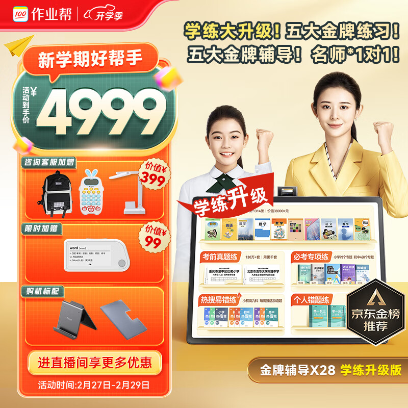 作业帮学习机X28金牌辅导学练版 小学到高中学习平板电脑 教材同步学练机 第3代护眼屏13.7'' 8+256G价格:4999.00元!