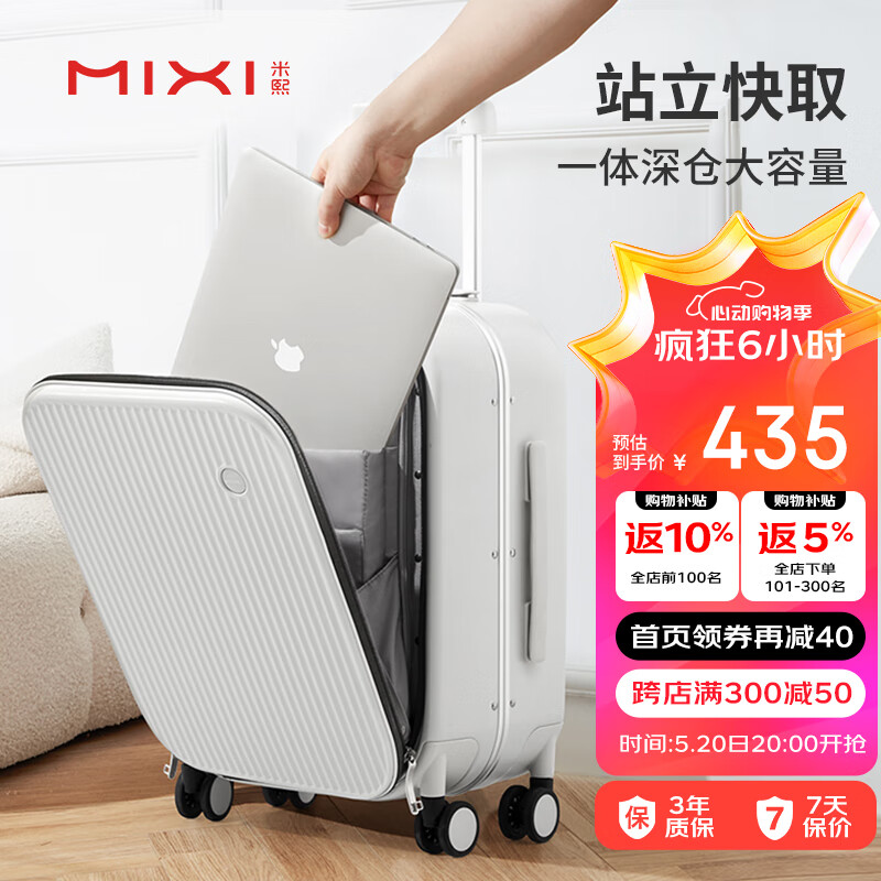 米熙前开盖铝框箱包拉杆箱子密码箱行李箱大容量旅行箱男20英寸烟白70价格:669.00元!