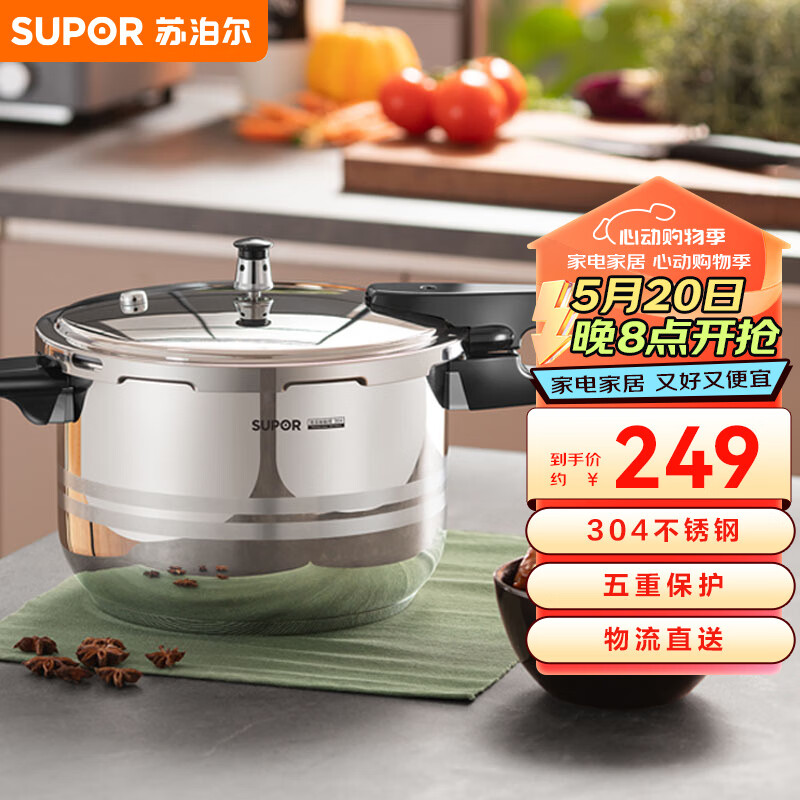 苏泊尔SUPOR高压锅304不锈钢5.0L锅22cm高压锅燃气电磁炉通用YS22ED价格:246.00元!
