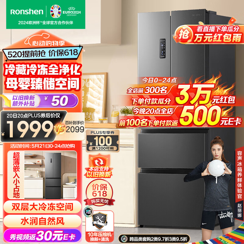 容声(Ronshen)离子净味325升法式多门四开门电冰箱家用一级变频节能无霜变温超薄嵌入式BCD-325WD16MP价格:2099.00元!