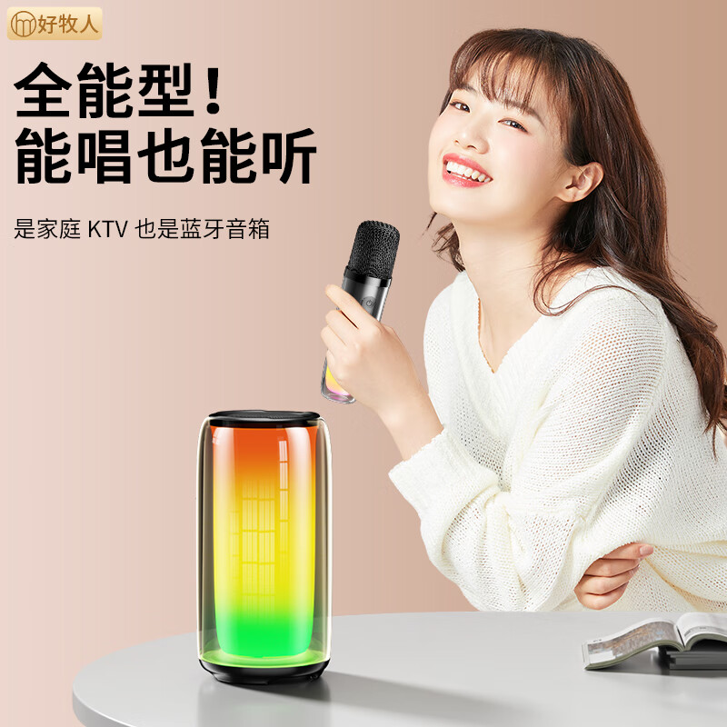 好牧人无线麦克风k歌蓝牙话筒音响一体式自带声卡家庭ktv音响套装户外音箱家用卡拉ok唱歌神器儿童礼物价格:159.00元!