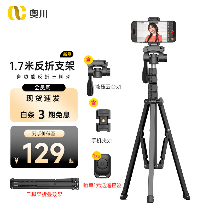 奥川手机架支架直播三脚架架子拍摄专用伸缩自拍拍照视频三角多功能价格:129.00元!