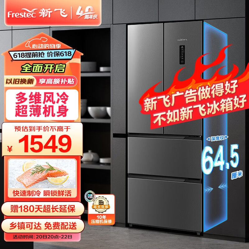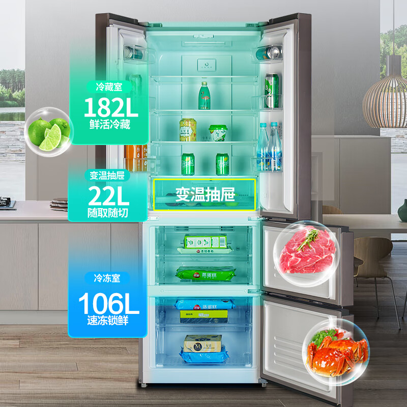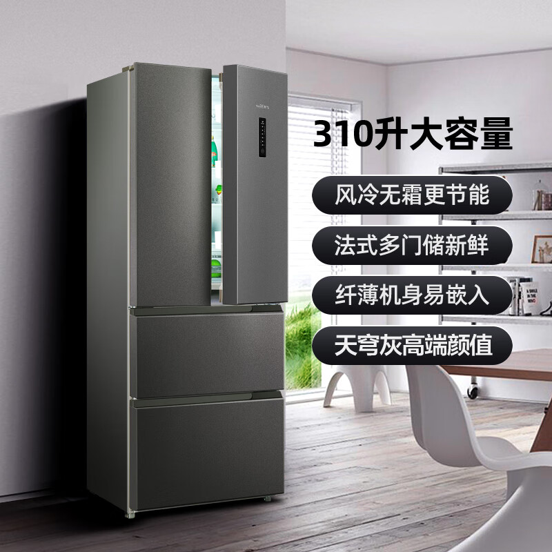 新飞(Frestec)310升超薄可嵌入法式上对开多门冰箱 多维风冷养鲜电冰箱 BCD-310WK7AT价格:1549.00元!