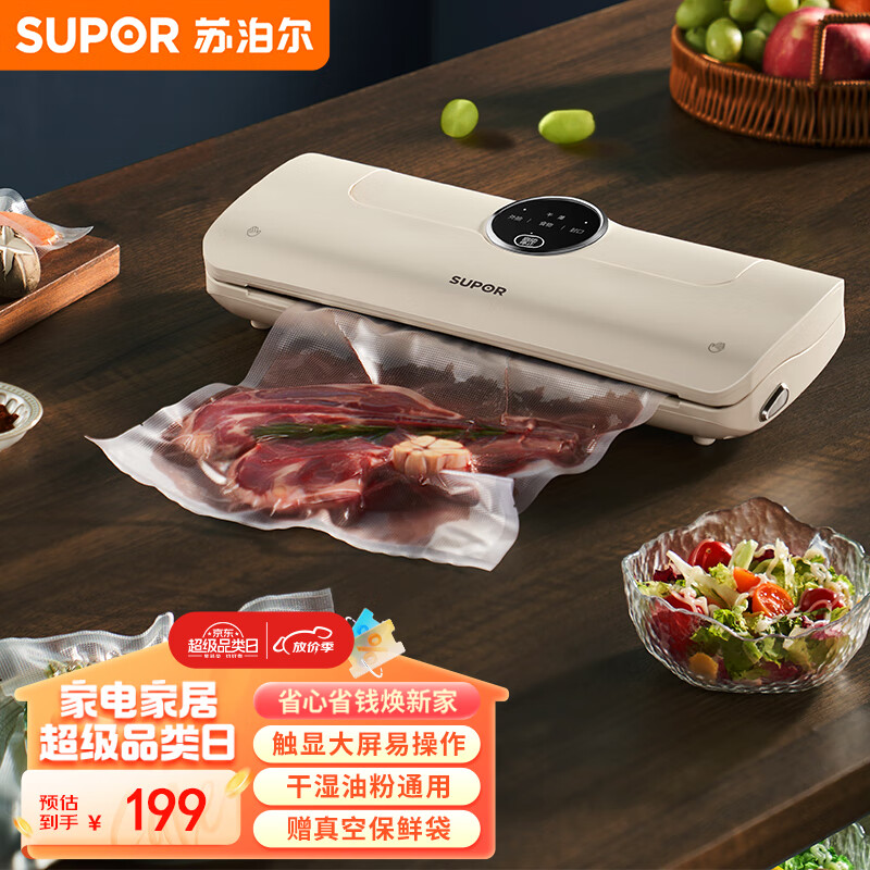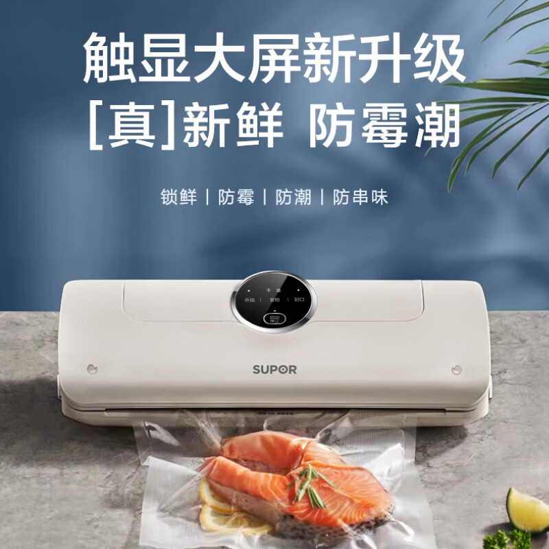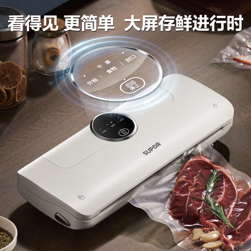 苏泊尔(SUPOR)真空封口机 触显大屏强劲吸力长效锁鲜快速真空干湿通用家用保鲜SF003价格:199.00元!