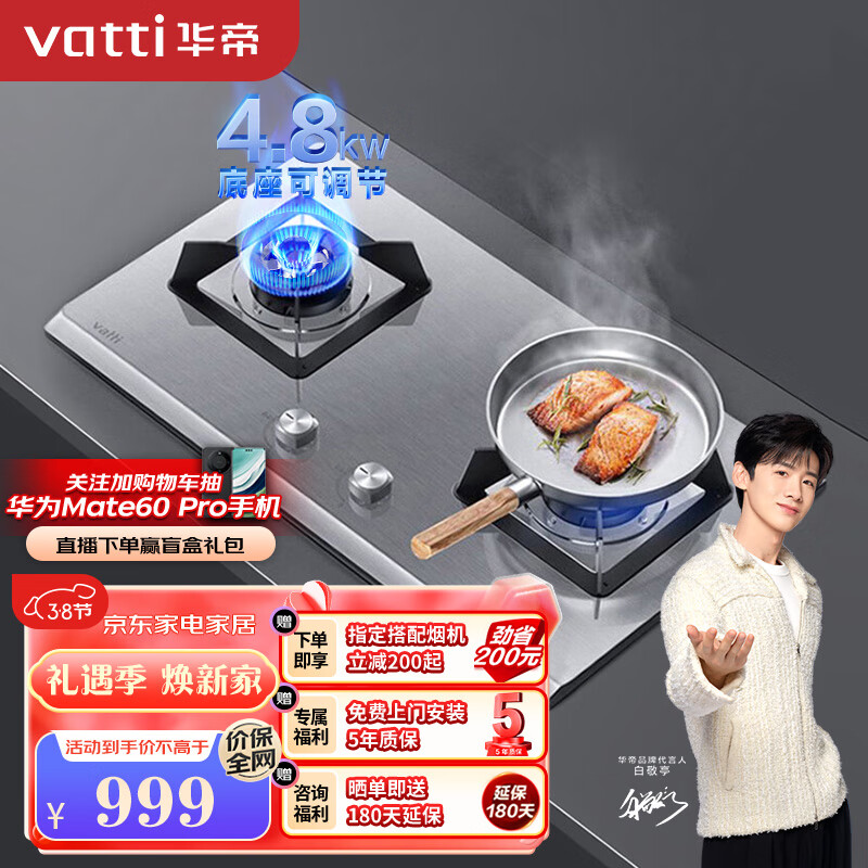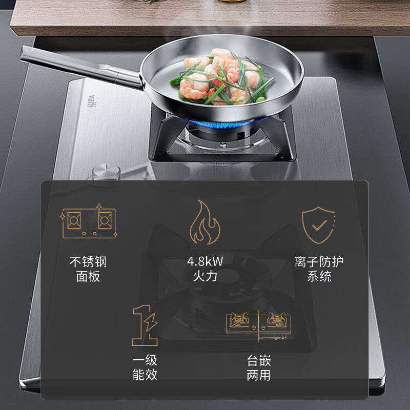 华帝(VATTI)燃气灶家用嵌入式 4.8kW易打理不锈钢面板煤气灶双灶台换灶不改孔灶具JZY-i10064A(液化气)价格:999.00元!