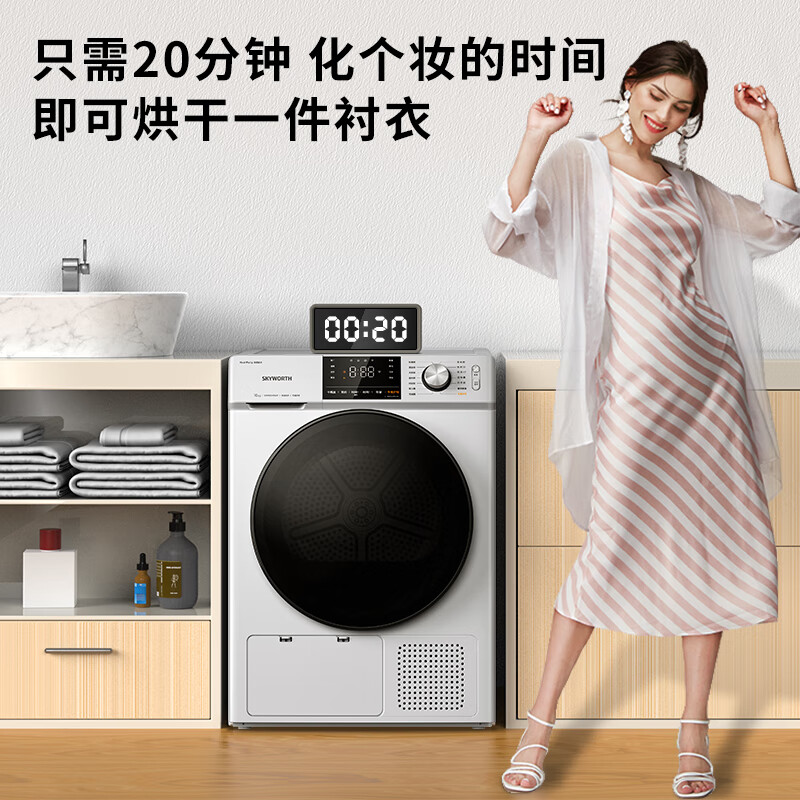 创维SKYWORTH)10公斤烘干机超薄家用热泵式干衣机滚筒全自动除螨除潮祛味宠物毛屑大容量XQH100-H56W价格:1999.00元!