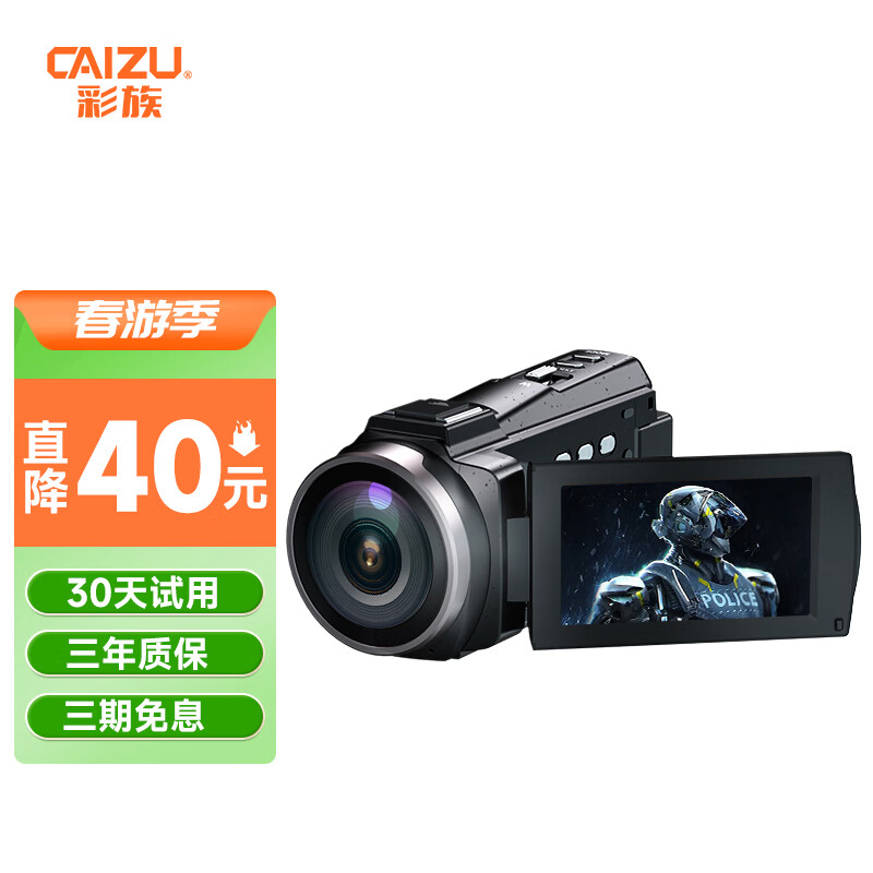 彩族(CAIZU) 4K家用摄像机高清DV数码VLOG摄影机学生旅游专业手持便携式防抖短视频录制录像夜视 标配 32G内存价格:699.00元!