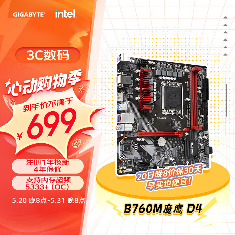技嘉(GIGABYTE)魔鹰 B760M GAMING D4 主板支持CPU 1390013700KF Intel B760 LGA 1700价格:699.00元!