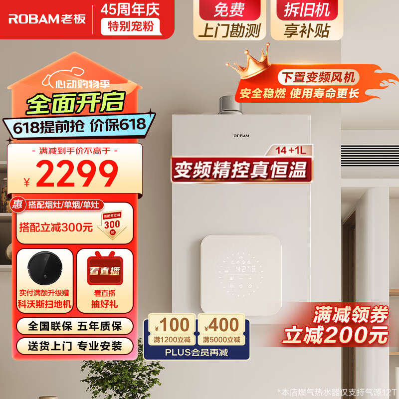 老板(Robam)14+1升燃气热水器天然气 家用智慧防冻智能变频精控恒温 下置变频风机强鼓式HD660A-14价格:2499.00元!