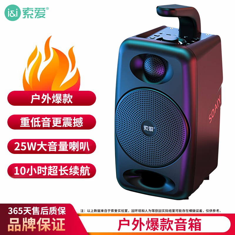索爱(soaiy)SH36 无线蓝牙音箱 大音量超重低音炮 广场舞户外音响 车载迷你小型便携收款扩音器升级版 黑价格:119.00元!