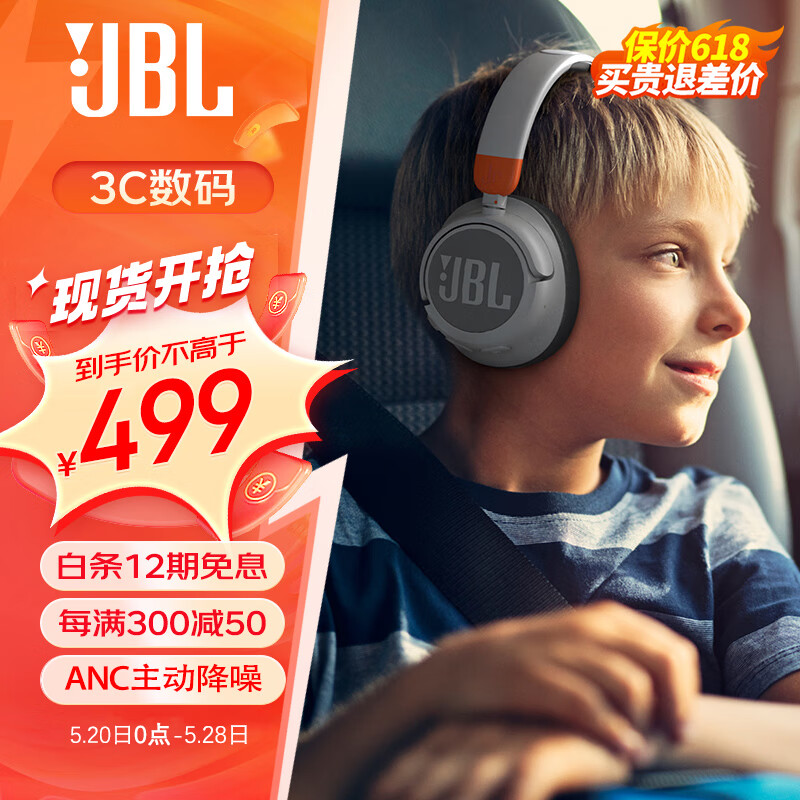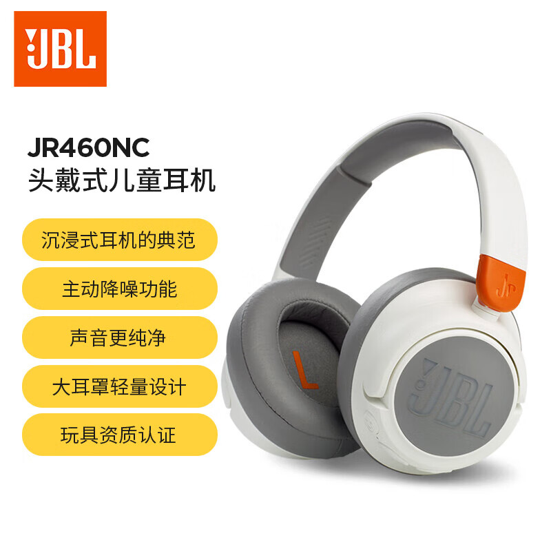 JBL JR460NC 头戴式降噪蓝牙耳机 益智沉浸式无线大耳包玩具英语网课听音乐学习学生儿童耳机 珍珠白价格:549.00元!