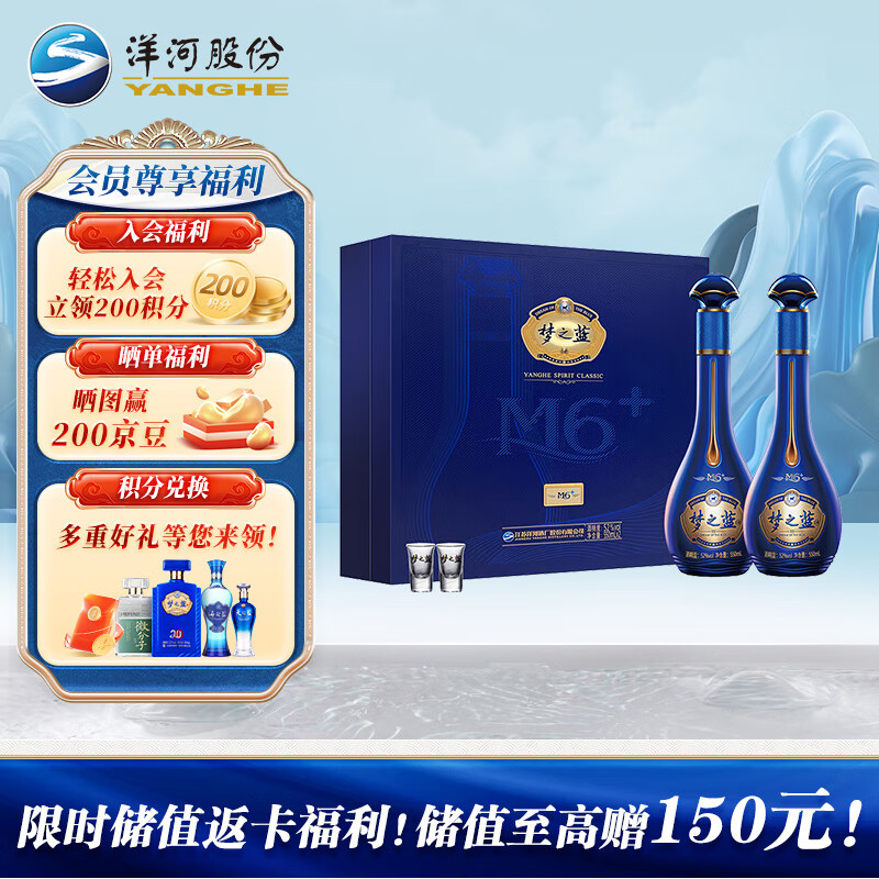 洋河 梦之蓝M6+ 52度 550ml*2瓶 礼盒装 绵柔浓香型白酒价格:1848.00元!