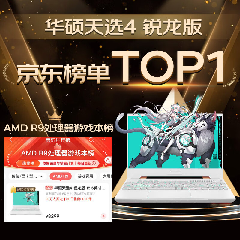 华硕天选4 锐龙版 15.6英寸高性能电竞游戏本 笔记本电脑(新R9-7940H 16G 512G RTX4060 2.5K 165Hz P3广色域)青价格:7799.00元!