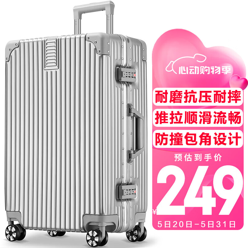 梵地亚行李箱男铝框万向轮拉杆箱大容量24英寸旅行箱密码箱女皮箱子银价格:249.00元!